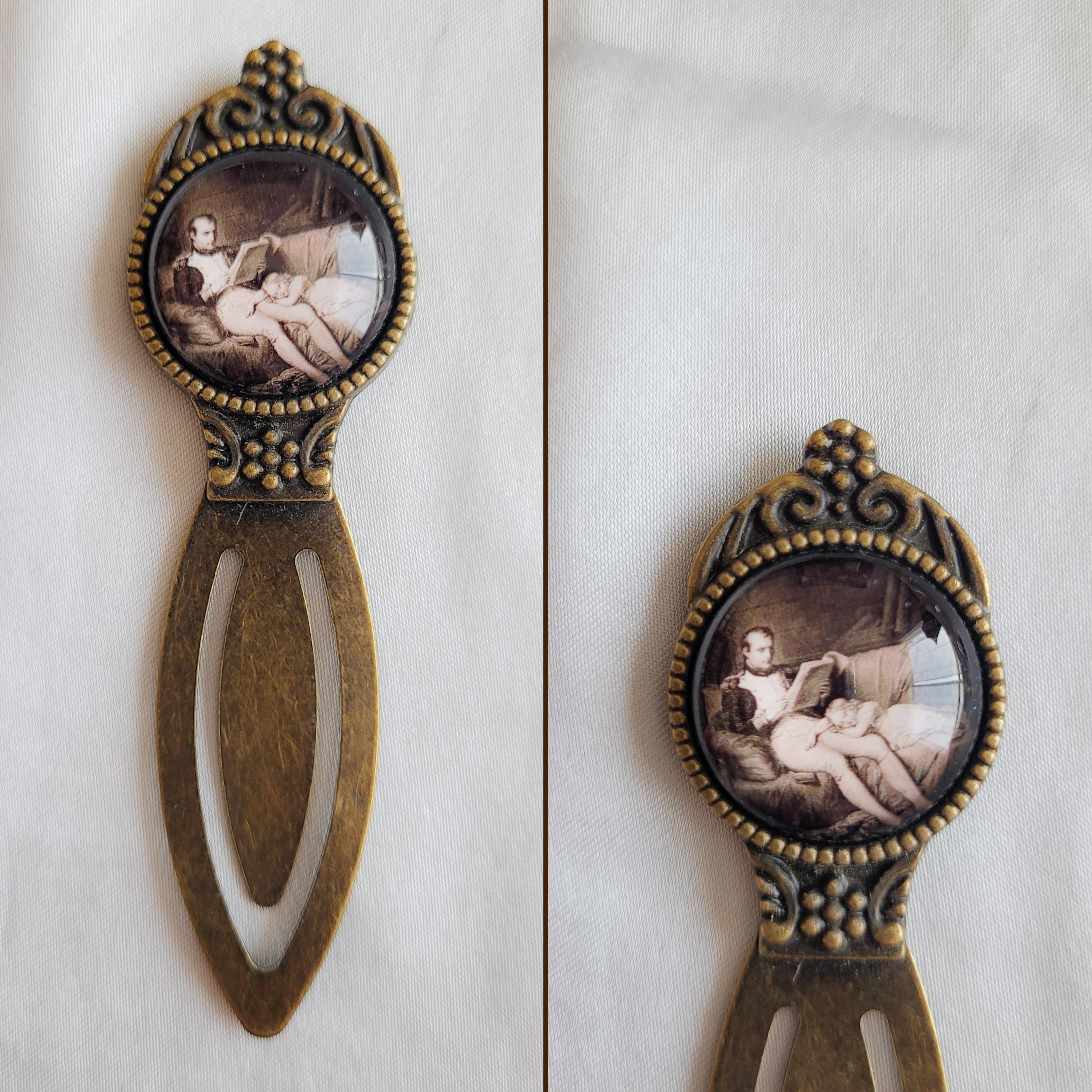 Marque page de couleur bronze surmonté d'un globe de verre de 18 millimètres.