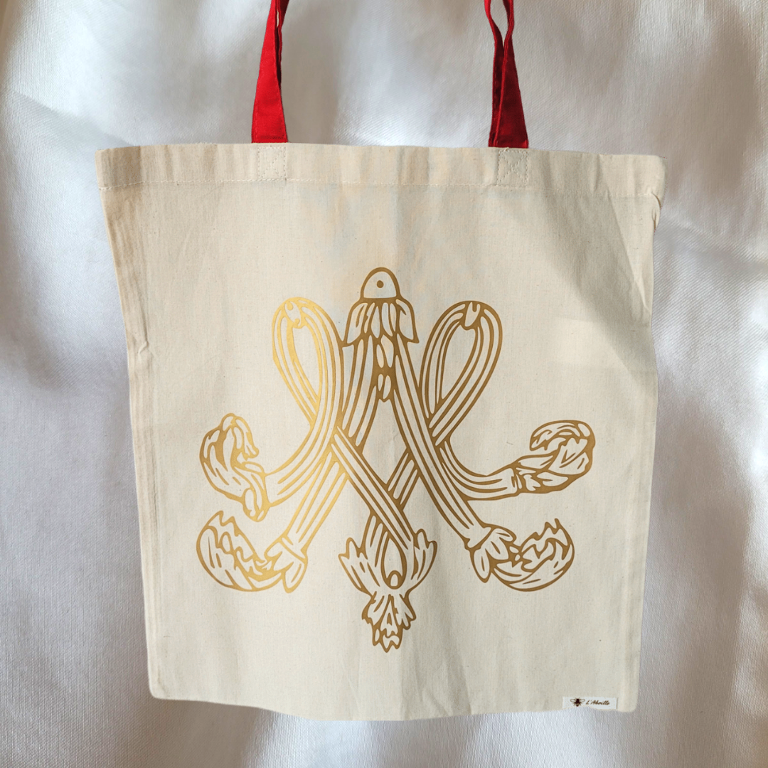 Sac en toile, 100% coton, personnalisé avec la silhouette de la reine Marie-Antoinette. Le flocage est réalisé dans l'atelier de l'Abeille.