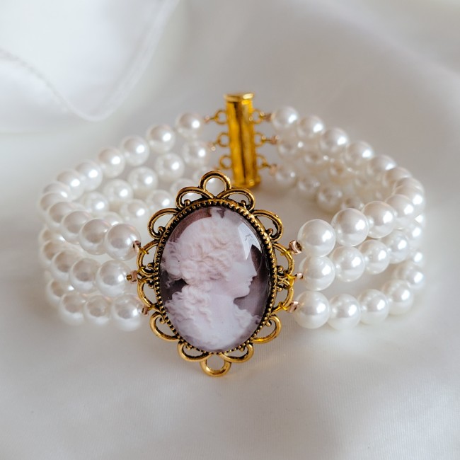 Bracelet 2 rangs - Jeune demoiselle à la rose - 19 centimètres