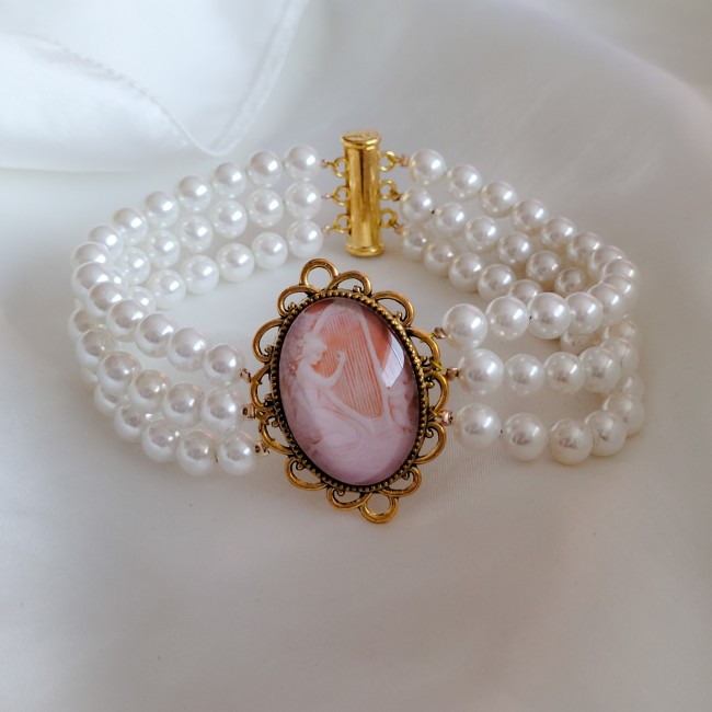 Bracelet 3 rangs - Demoiselle à la harpe - 22 centimètres
